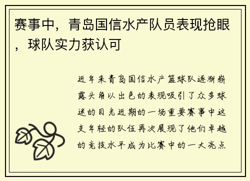 在青岛的初秋时节,海风拂面,蓝天白云下,青岛国信水产队的主场比赛吸引了成千上万的观众涌入体育场。这不仅是一场足球比赛,更像是一场城市的狂欢节。在这片土地上,足球早已不仅仅是一项运动,而是凝聚着青岛人民情感与骄傲的重要纽带。 作为青岛本土的足球劲旅,青岛国信水产队拥有悠久的历史和辉煌的战绩,他们的每一场比赛都牵动着成千上万球迷的心。无论是家喻户晓的老球迷,还是刚刚入门的新球迷,每次主场比赛都会吸引他...